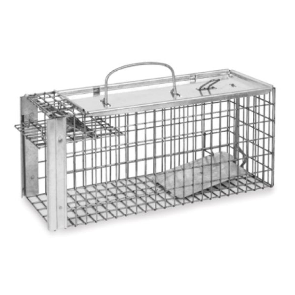 - Ready-to-use cage trap that is easy to bait and set